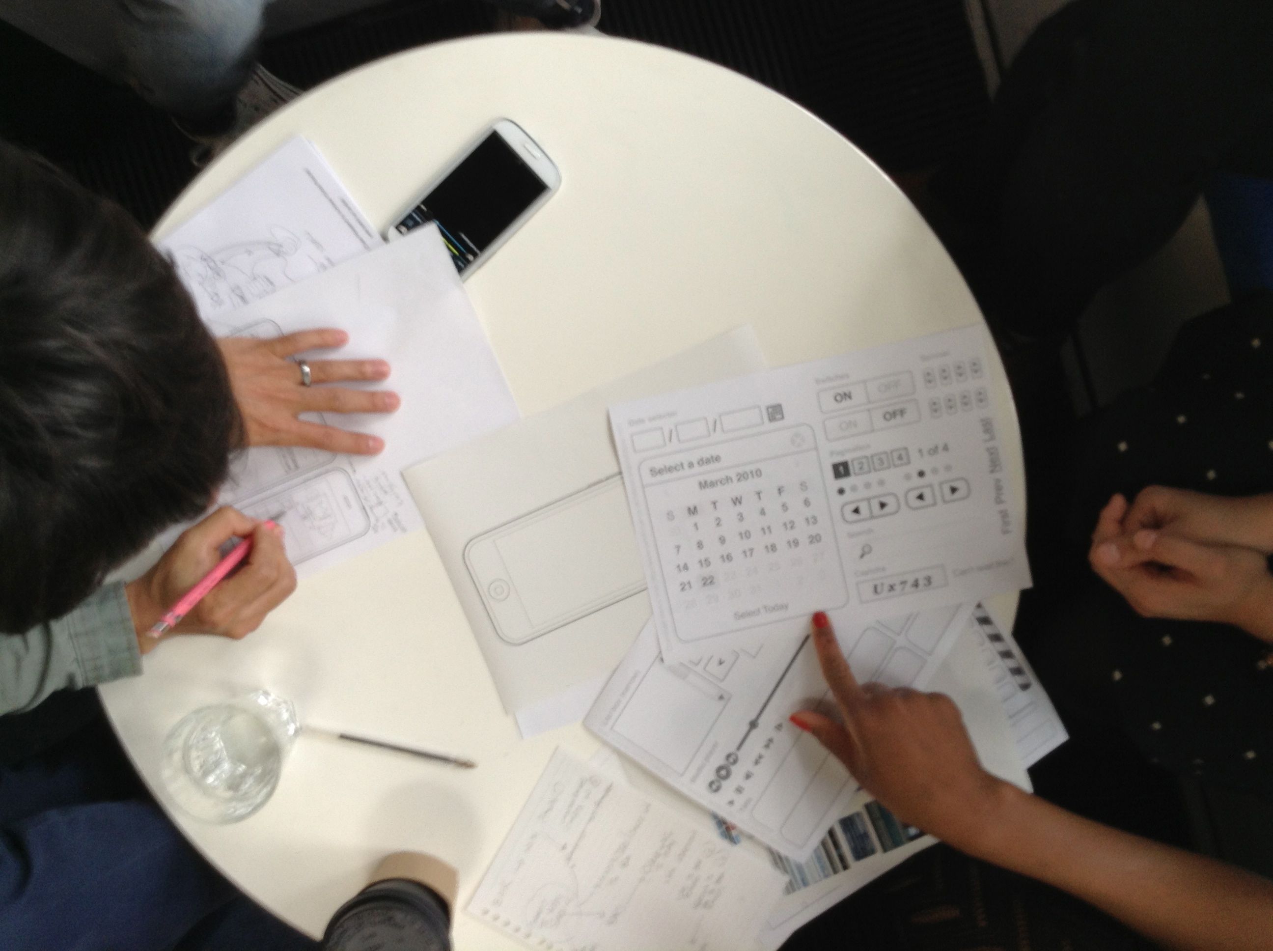 Recently ran a workshop for MA Service Design students at the RCA on prototyping as a design method and a way of thinking about generating ideas. We started out with some general background information taking in what prototypes are for, how to use the fidelity of the prototype to communicate ideas at different stages of a project, how to include potential users in prototype development, and how to prototype interactions in a system. After this broad grounding we spoke specifically about prototyping digital interfaces as opposed to services or products. Software interfaces sit between the very tangible ways of prototyping physical products with their exploration of form and material and the abstract nature of services which is often best done in context with people i.e. role playing an airport security scenario or a hotel check-in procedure.