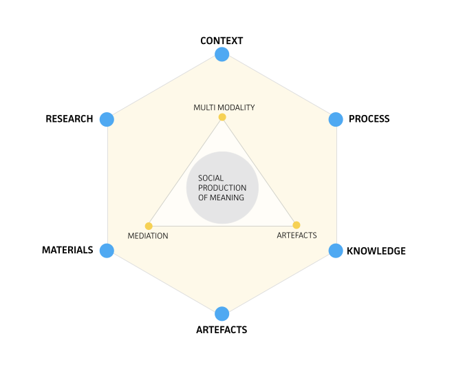 In Helsinki this week for NordiCHI where I participated in a Doctoral Consortium run by Kari Kuuttii and Gilbert Cockton two big names in European HCI research going back 30 years or so. Kuuttii’s main contribution has been in an integration of the sociological with the computational, right in my area. Cockton has been a strong advocate for the role of design, and practice based research in HCI, also relevant to me. They had two main bits of advice, both of which were well observed. Kuutti said I had too much in my theoretical toolkit and that a common problem with PhD students is they often attempt over-ambitious theoretical synthesis. My own proposal is a triangulation of multimodality, mediation in social constructionism, and an anthropological reading of interactive artefacts. All of this is framed by design. See conceptual model below.