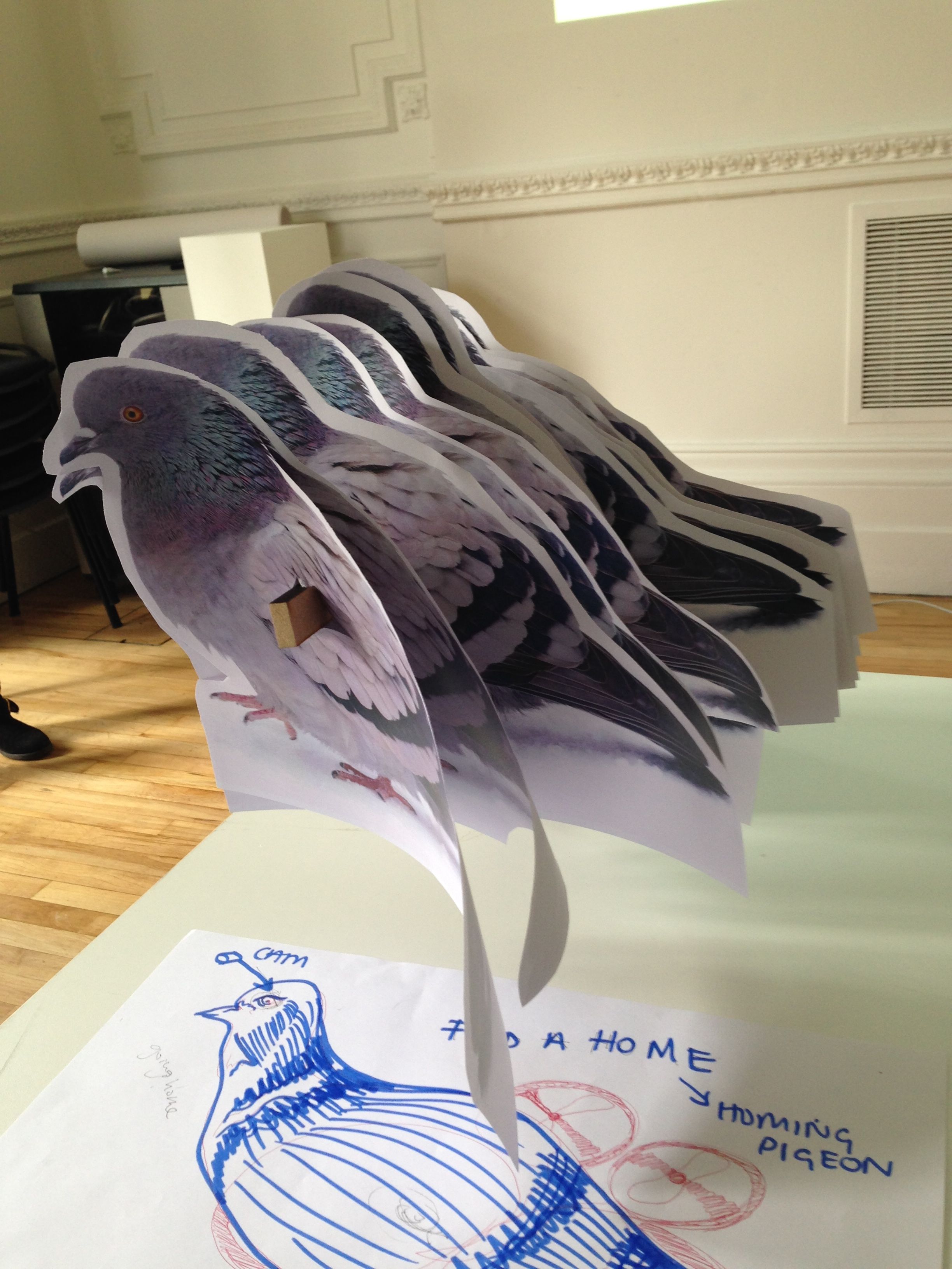 This is the ‘looking for a room’ Homing pigeon by Riah Naief, Will Fairbrother, and Wasabii. You take it with you when looking round potential places to rent and it reports on the general condition of the place. Produced in response to the brief – design a cultural probe inspired by what people think about looking for somewhere to live in London.